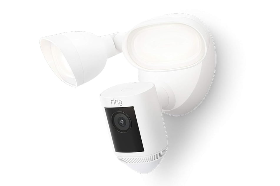 Keep your home safe and under control at all times with the Ring Floodlight Cam Wired Pro with Bird's Eye View.