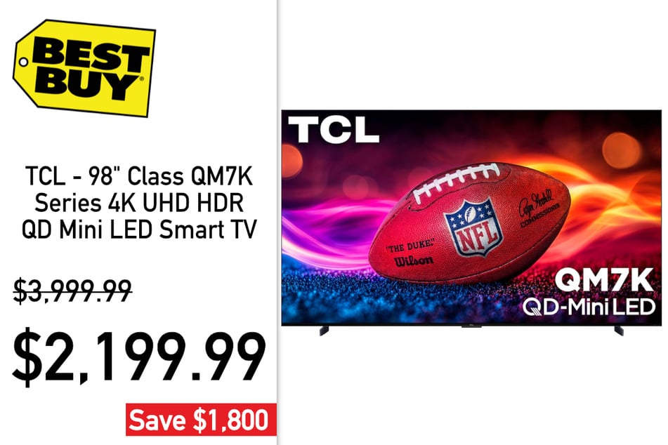 The deal that jumps out most is the TCL 98-inch Class QM7K Series 4K UHD HDR QD Mini LED Smart TV at $2,199.99, down from $3,999.99.