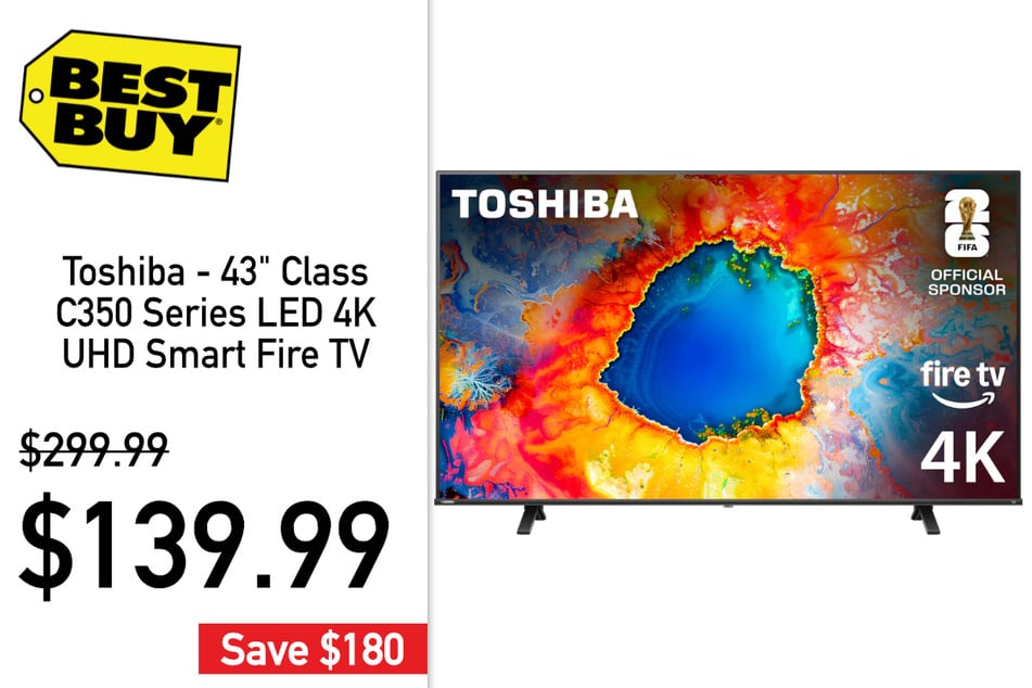 First up is the Toshiba 43" Class C350 Series LED 4K UHD Smart Fire TV at $139.99, down from $299.99.