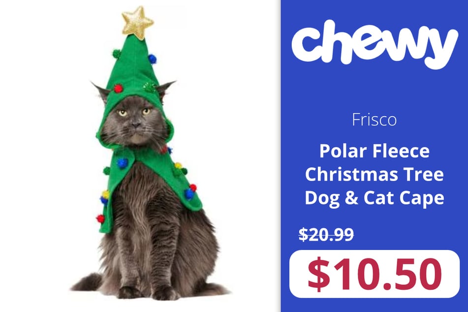 The Polar Fleece Christmas Tree Dog & Cat Cape captures everything delightful about holiday pet fashion, now available for just $10.50 instead of the usual $20.99.
