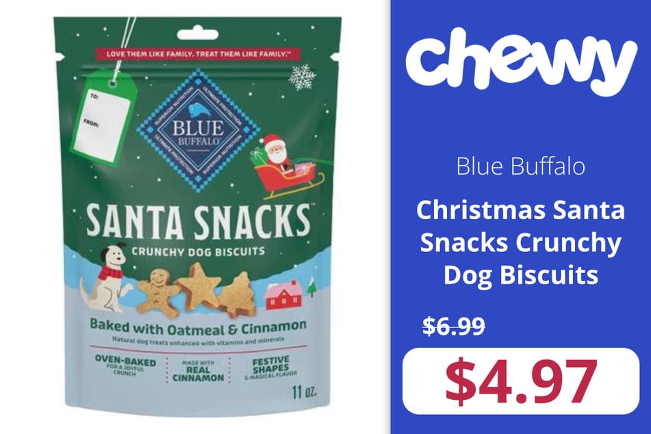 Blue Buffalo's beloved Santa Snacks Crunchy Dog Biscuits drop from $6.99 to only $4.97, giving you a chance to spoil your pup with quality treats without breaking the bank.
