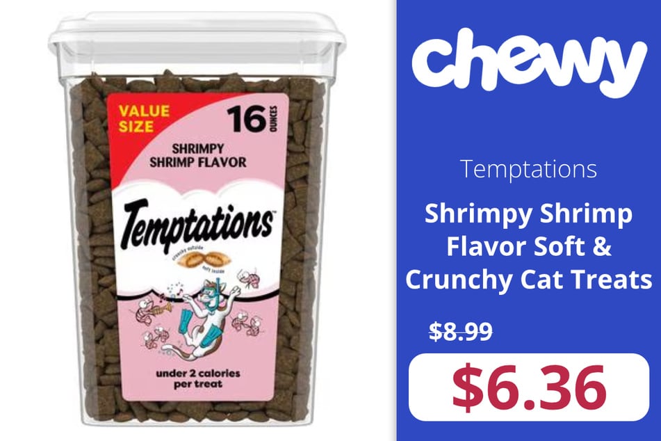 Right now, Temptations Classic Shrimpy Shrimp Flavor Soft & Crunchy Cat Treats are available for just $6.36, down from $8.99.