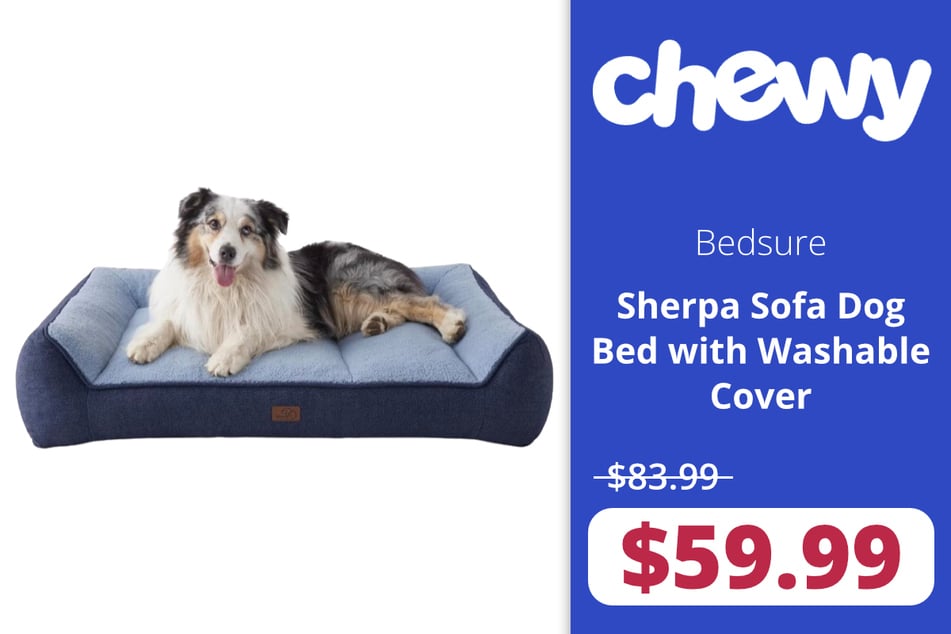 This Bedsure Sherpa Sofa Dog Bed with Washable Cover for $59.99 instead of $83.99 features a plush cover, sturdy shredded foam and a padded base.
