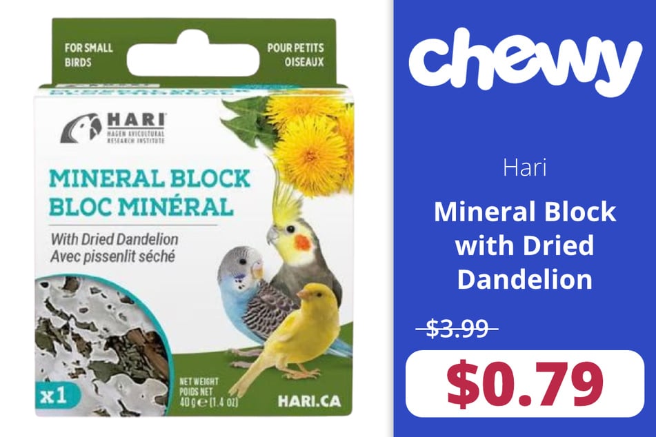 Mineral Blocks with Dried Dandelion for $0.79 instead of $3.99 keep birds busy with entertainment and treats – suitable for various bird species.