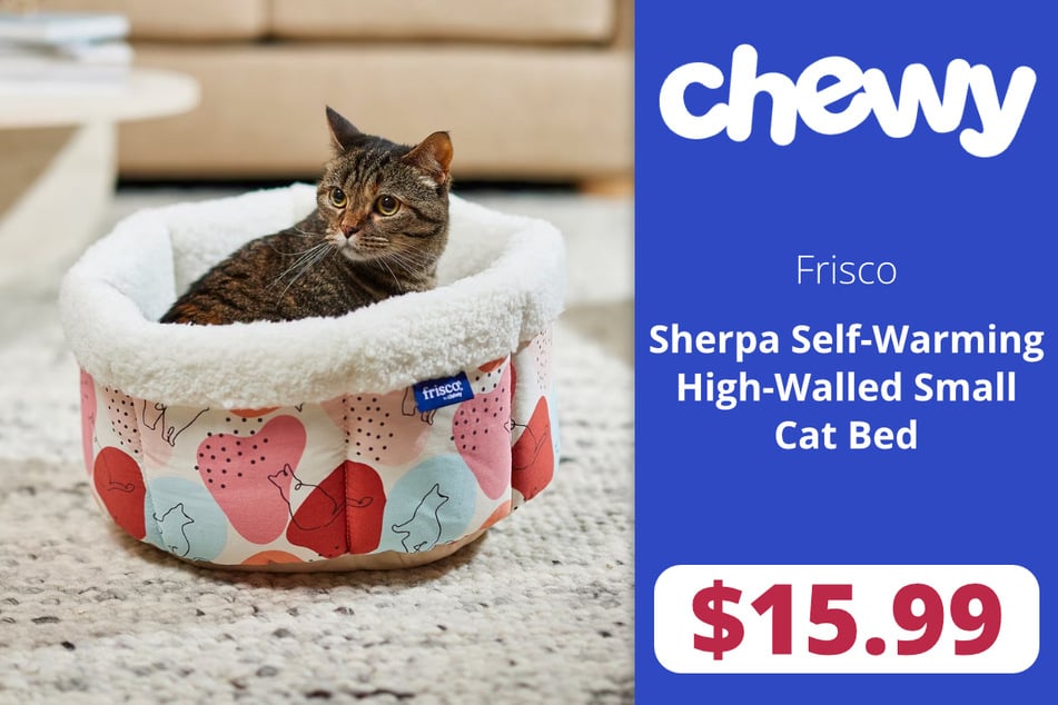 Get this Frisco Sherpa Self-Warming High-Walled Small Cat Bed for $15.99.