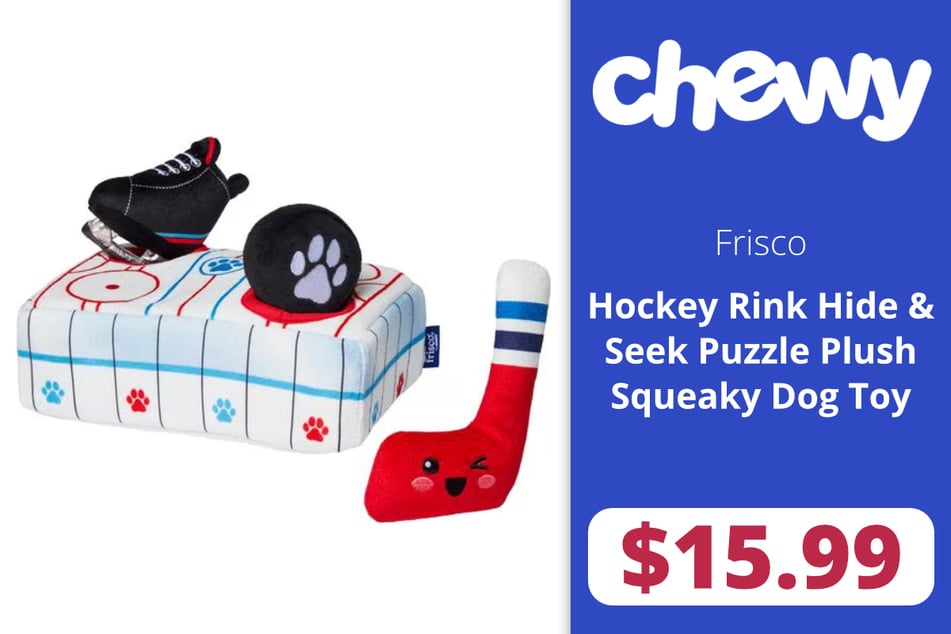Like this Frisco Hockey Rink Hide & Seek Puzzle Plush Squeaky Dog Toy for $15.99, which features three plush toys to stuff inside the hockey rink burrow. This will keep your pet active!