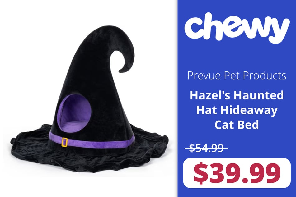 A must-have for every witch is the perfect hat. Even the obligatory black cat fits in here. We are talking about the Hazel's Haunted Hat Hideaway Cat Bed for $39.99 instead of $54.99.