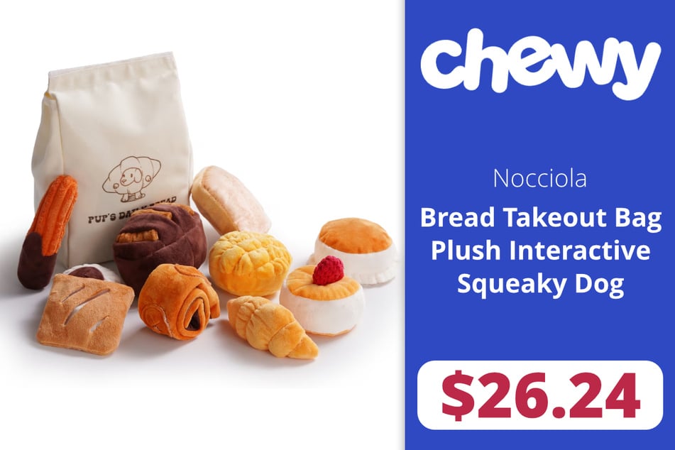 Your dog will be on a roll with this Bread Takeout Bag Squeaky Dog Toy for $26.24. It's got 10 squeaky pieces that'll keep them entertained from crust to crust.