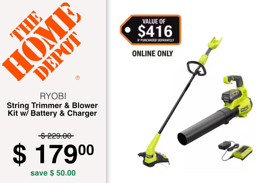 Get a complete yard care solution with this RYOBI String Trimmer & Blower Kit with Battery and Charger for $179 instead of $229. It's the perfect upgrade for any homeowner.