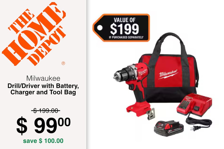 At only $99 instead of $199, this Milwaukee Drill/Driver with Battery, Charger and Tool Bag is an absolute no-brainer – you can't find a better value.