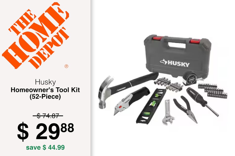 The Husky Homeowner's Tool Kit (52-Piece) for $29.88 instead of $74.87 provides everything you need for everyday home repairs and projects with professional-grade durability.