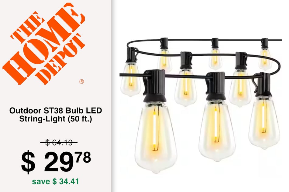 Add instant charm and warmth to your outdoor space with the Outdoor ST38 Bulb LED String-Light (50 ft.) for $29.78 instead of $64.19.