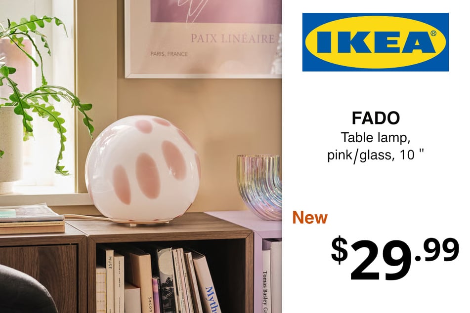 Take the FADO table lamp, a customer favorite that's now available in an eye-catching pink and glass finish for just $29.99.