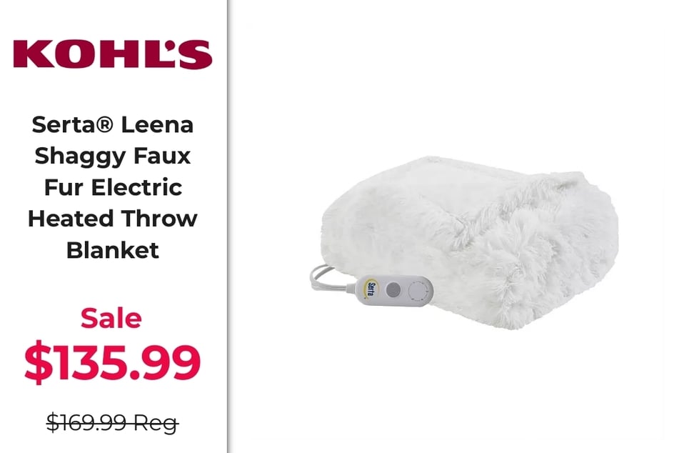 The Serta® Leena Shaggy Faux Fur Electric Heated Throw Blanket for $135.00 instead of $169.99 ensures that every moment on the sofa becomes a luxurious spa experience with perfectly adjustable warmth.