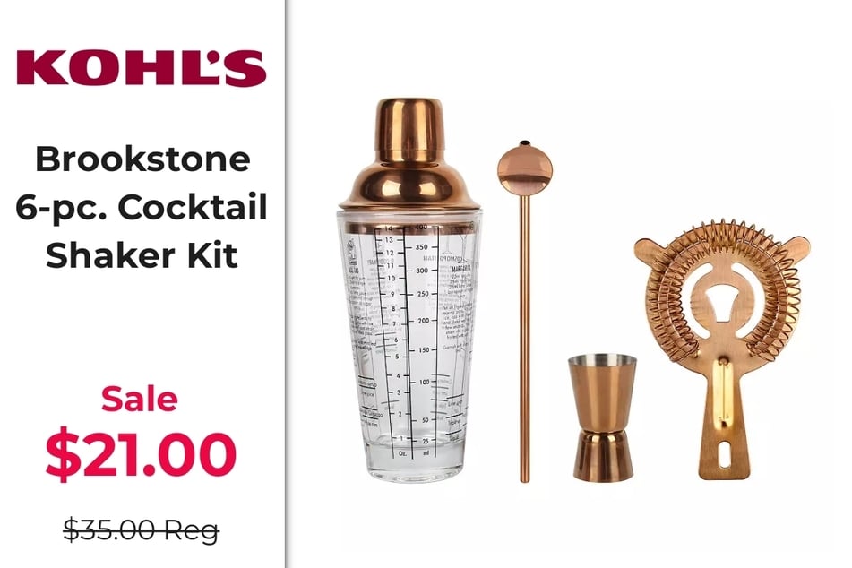 A standout example: the Brookstone 6-pc. Cocktail Shaker Kit, now just $21, down from $35.