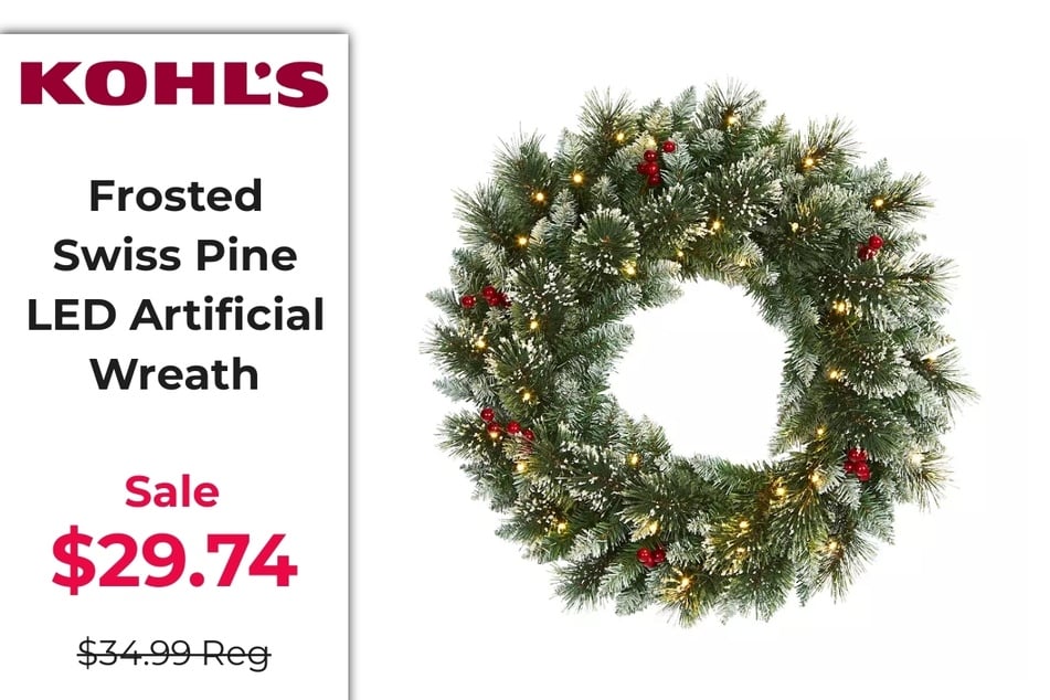 Planning ahead for the holidays? Grab the Frosted Swiss Pine LED Artificial Wreath for $29.74, down from $34.99.
