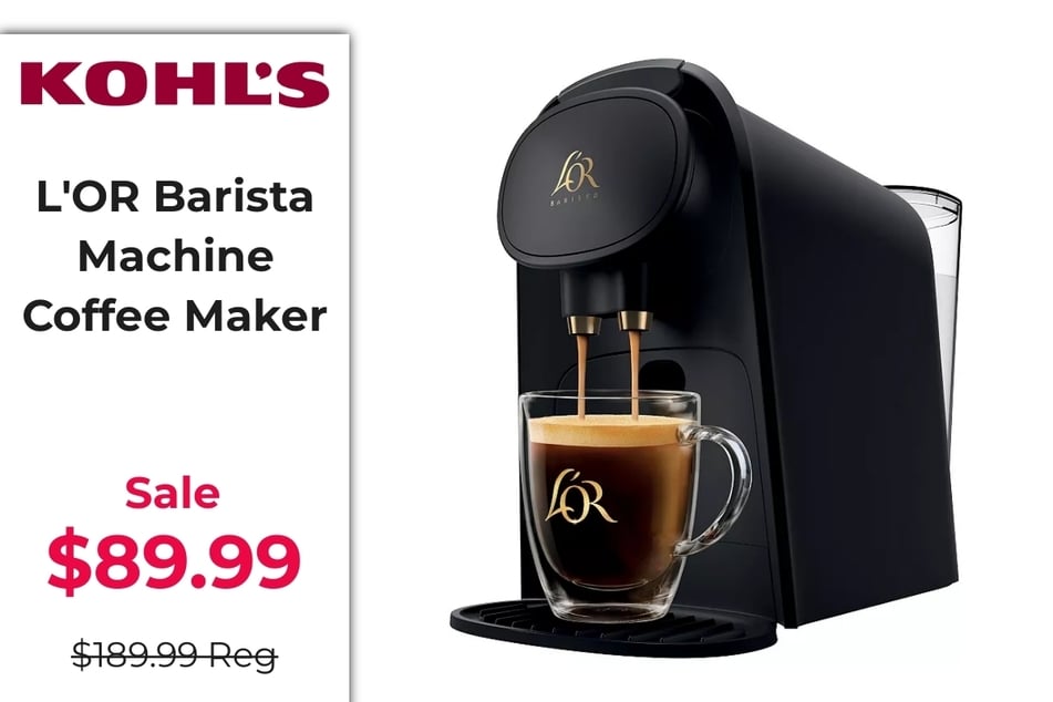 The L'OR Barista Machine Coffee Maker drops to $89.99 from $189.99, delivering café-quality brewing at half the price.