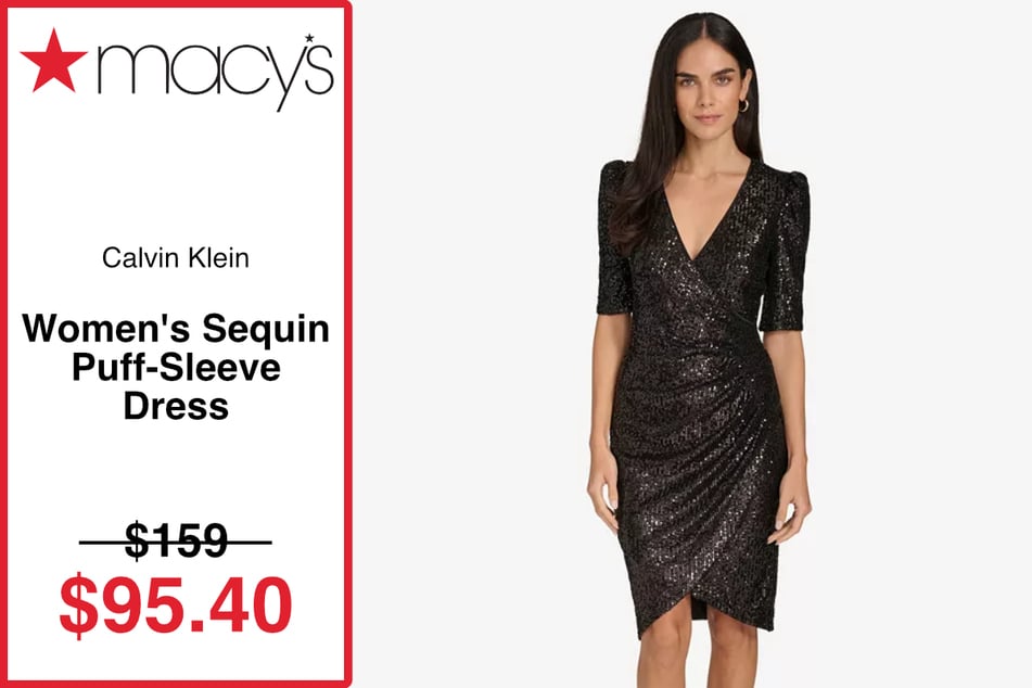 A real highlight for stylish holiday looks is the elegant Calvin Klein Women's Sequin Puff-Sleeve Dress for $95.40 instead of $159.