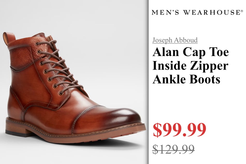 The Joseph Abboud Alan Cap Toe Inside Zipper Ankle Boots, now $99.99 down from $129.99, are a prime example.