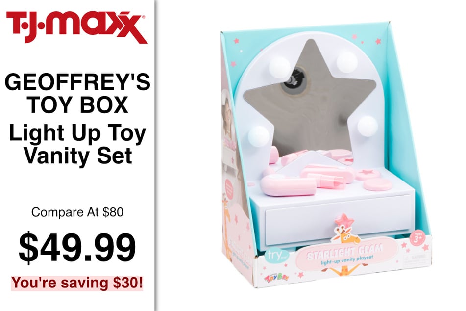 The GEOFFREY'S TOY BOX Light Up Toy Vanity Set brings imaginative play to life with interactive lights and realistic accessories that spark creativity – now just $49.99, compared at $80.