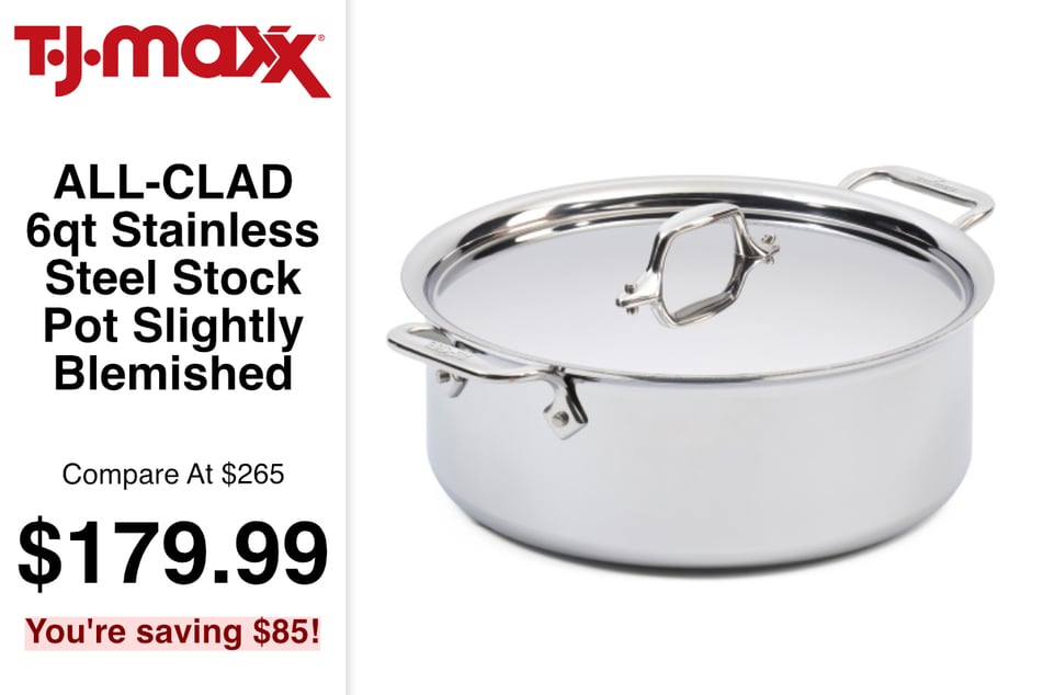T.J.Maxx delivers exactly that with the ALL-CLAD 6qt Stainless Steel Stock Pot at $179.99, a significant $85 savings from its $265 retail price.