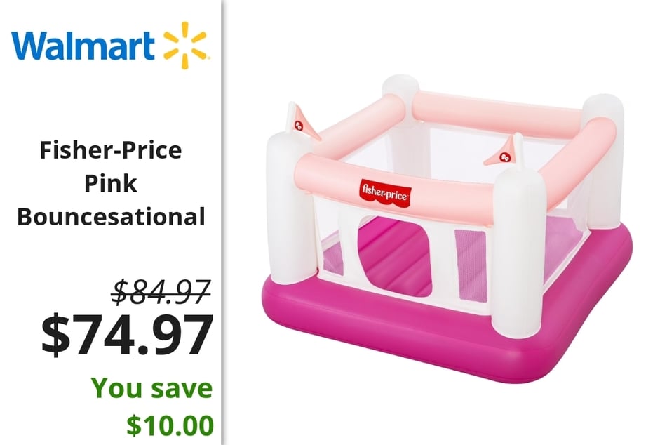 If you're looking for something that will genuinely excite the kids, Walmart has the Fisher-Price Pink Bouncesational Indoor Inflatable Bouncer on sale for $74.97, down from $84.97.