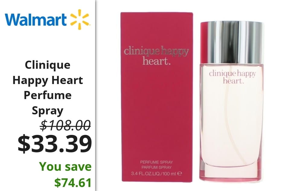 Walmart's beauty section is worth a detour right now. The Clinique Happy Heart Perfume Spray has dropped to $33.39, a significant cut from its regular price of $108.