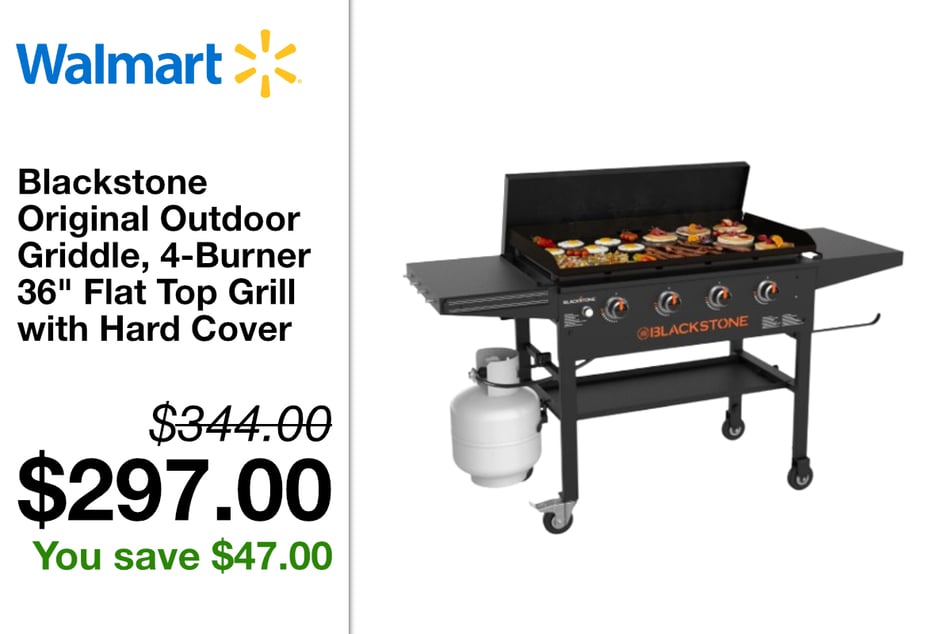 One highlight this Saturday, April 18 is the Blackstone Original Outdoor Griddle, 4-Burner 36" Flat Top Grill with Hard Cover now priced at $297 instead of $344.