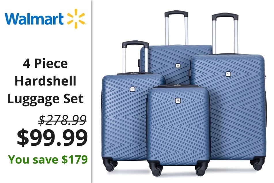 Travel enthusiasts are snagging the 4 Piece Hardshell Luggage Set at $99.99, down from $278.99.