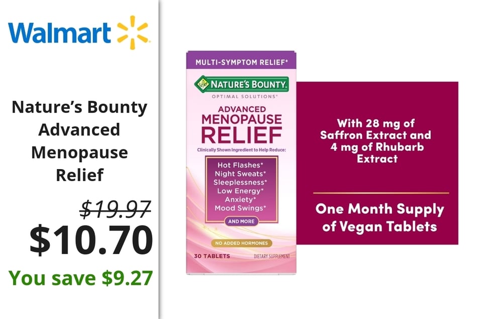 Case in point: Nature's Bounty Advanced Menopause Relief now rings up at just $10.70, slashed from $19.97.