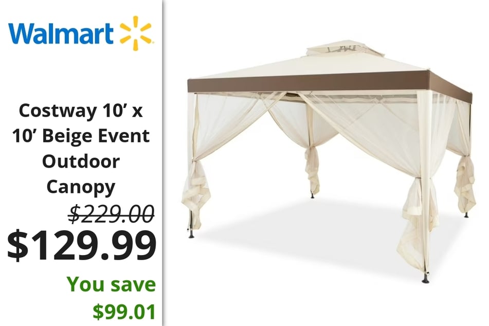 The star of the show is the generous 10' x 10' Beige Event Outdoor Canopy, now just $129.99 after dropping from $229.