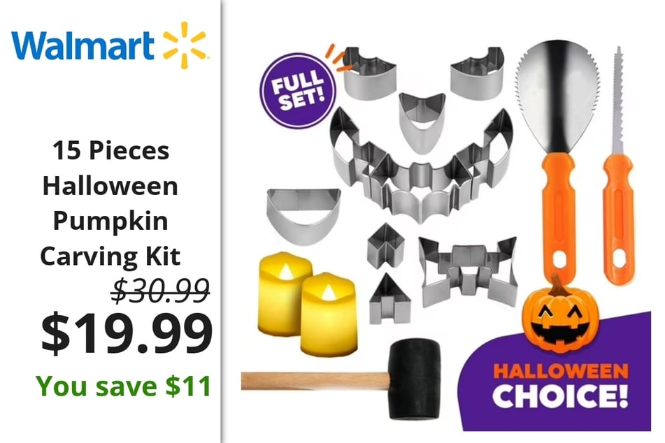 The standout steal is the comprehensive 15 Piece Halloween Pumpkin Carving Kit, slashed to just $18.99 from its original $30.99.
