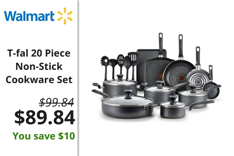 The T-fal Easy Care 20 Piece Cookware Set exemplifies this breadth, now priced at $89.84 instead of $99.84, providing everything required to fully equip your kitchen in one purchase.